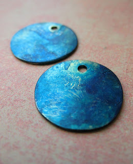 I even cut and drilled some copper and brass charms for peacock blue dangles.