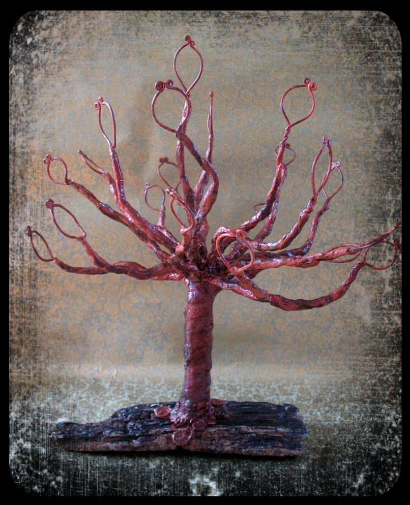 Once the tree was rock hard, I coated it in metal coating and treated it to layers of patina; red, black, orange and brown.